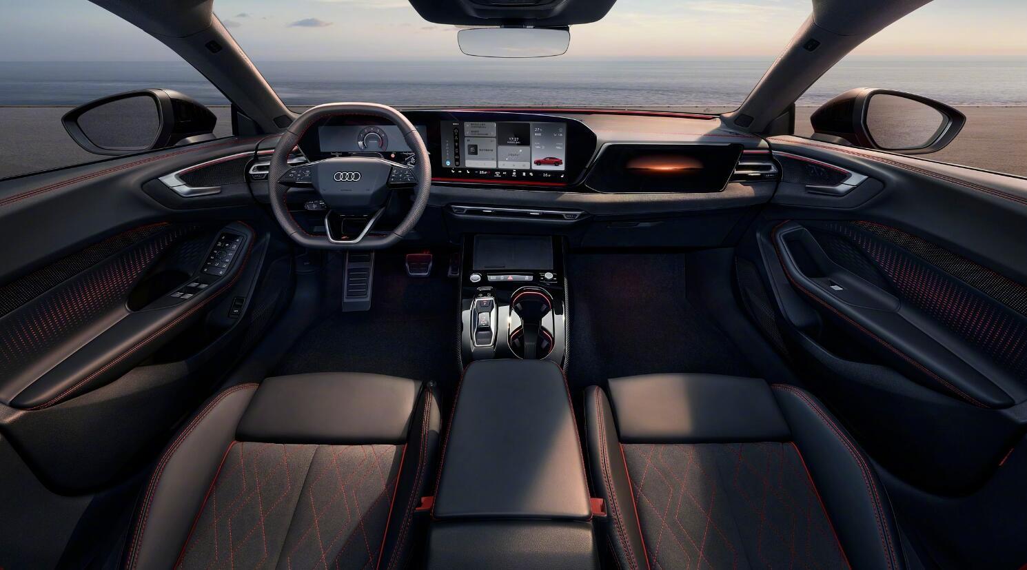 再看内饰与各种配置。上汽奥迪A5L SportBack的进步已经很大了,用上了11.9英寸+14.5英寸+10.9英寸的三连大屏,还有可调光全景天幕,说实话,还不错的。奥迪也在向中国新势力们学习,也在努力迎合用户的口味,这点没得挑。但用料上还是显得有些保守,总觉得塑料感重了些,有可能是太强调运动感了吧,所以就少了点细腻。