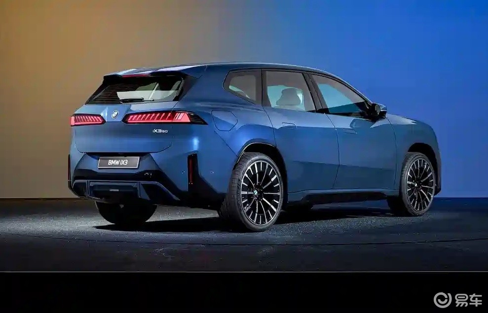 车尾方面,新世代iX3并未采用时下流行的贯穿式尾灯设计,尽管如此尾灯依然很修长,中间的BMW Logo比较醒目。后包围的样式与前脸相呼应,底部扩散器的造型颇显运动感,棱角分明。