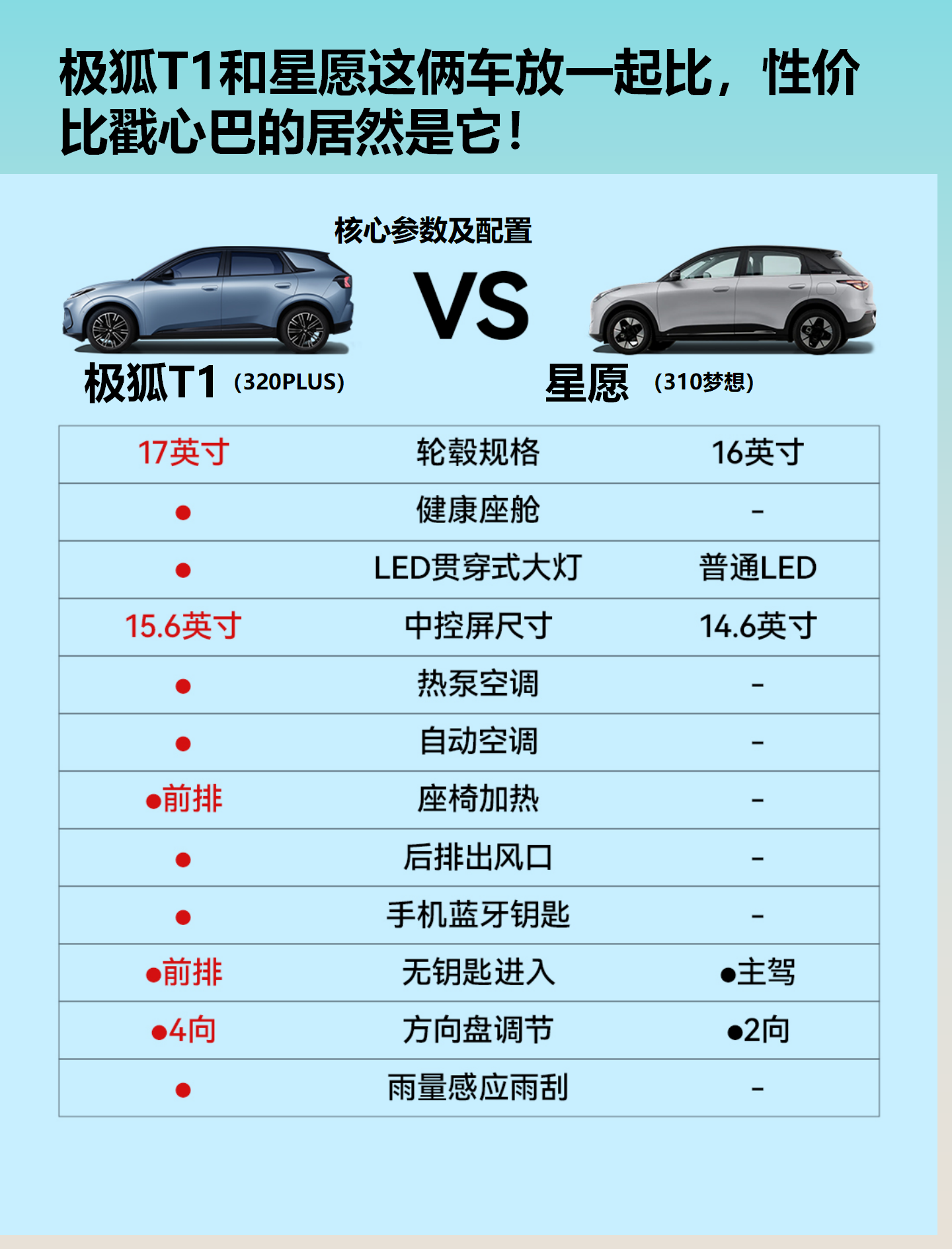 T1直接标配18寸铝合金轮毂(星愿顶配才给16寸),搭配百万豪车同款Microcloud纤维绒内饰,触感细腻高级。星愿外观配色丰富,但轮毂尺寸和内饰材质更偏向实用定位。