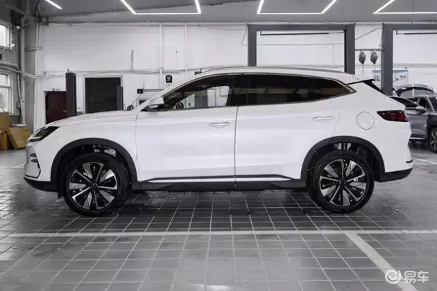 侧面部分,宋PLUS DM-i没有悬浮式车顶,沿用传统拉手式门把手、有框车门,相比之下,设计相对“规矩”。靠后车顶采用略带溜背设计,造型设计蛮抢眼。