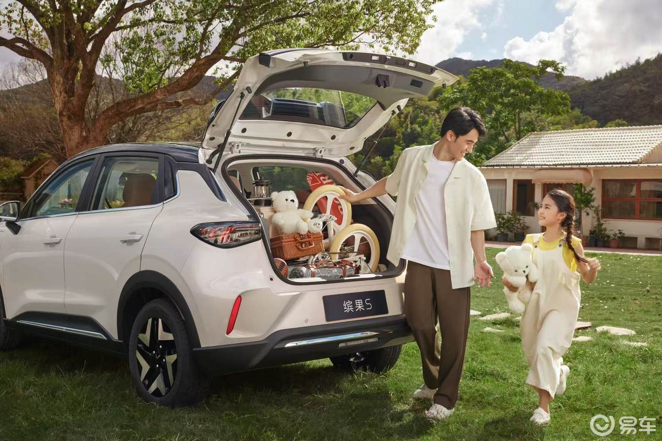 “小车身大空间”是缤果S的核心杀手锏。4265×1785×1600mm的车身尺寸下,84%的得房率让前后排乘客均能舒展自如,1008mm前排头部空间与882mm后排间距,即使180cm身高也能从容落座。更颠覆性的是同级唯一的1450L下沉式后备厢,可轻松容纳5层猫架、露营装备或大型行李箱,配合25处储物空间(含175mm口红槽、开放式补妆台),精准解决女性用户“带娃出行”与“周末远郊游”的收纳痛点。
