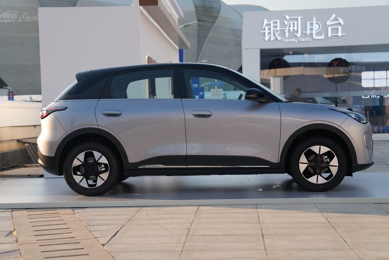 那我们看车型本身,外观上吉利星愿是典型的大空间纯电小车的造型,四轮四角的设计,车身圆润,车头是有羽毛状的大灯,很简洁,也很可爱,然后车头有70升的前备箱,这在同级别是有优势的,一般这类车型没有能做到这么大的前备箱或者是没有前备箱。