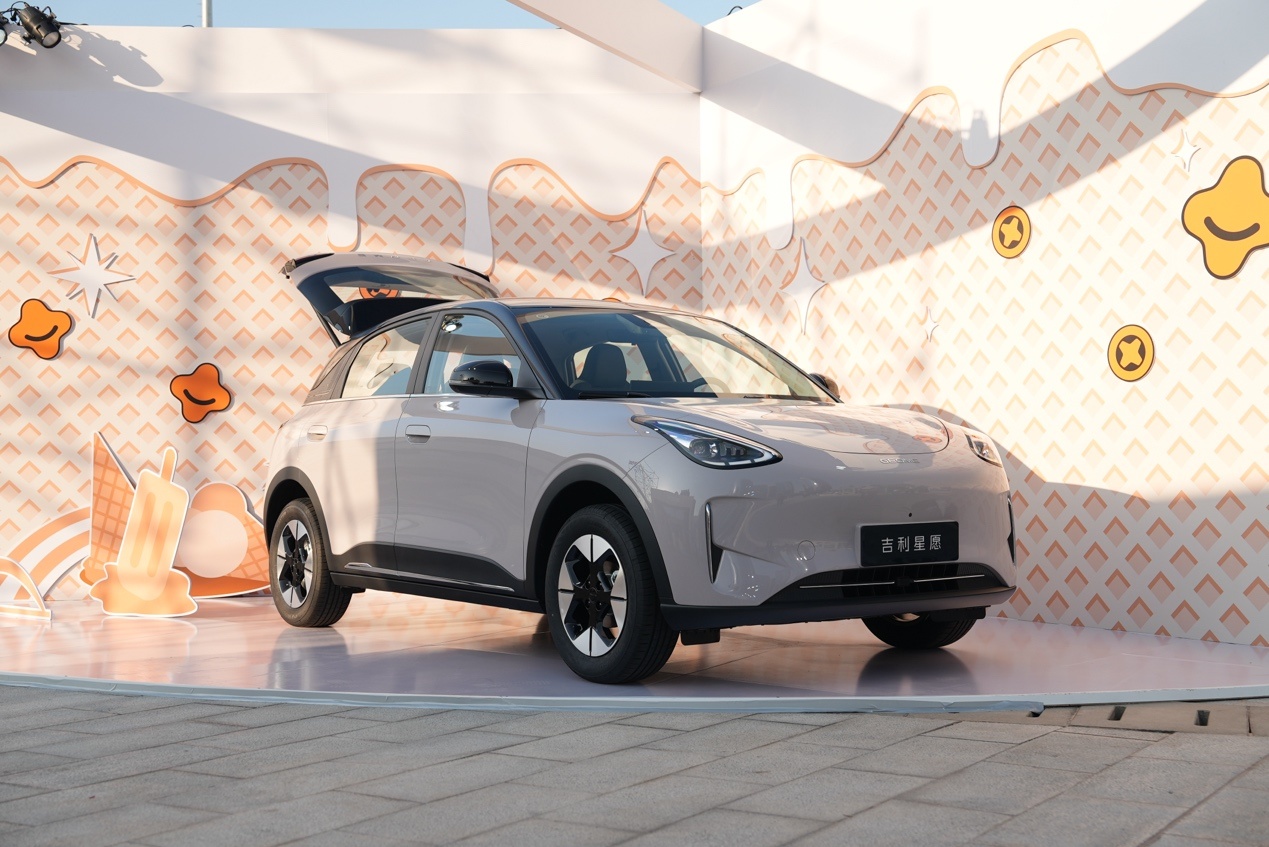 车身侧面的话,吉利星愿的块头在同类车型里也算大的,车长4135mm,车宽有1805mm,轴距是2650mm,侧面细节上有半隐藏式的门把手,撞色的车顶设计。车尾部分,尾灯和前大灯相呼应,尾部看起来也比较简洁、协调,整个设计上,吉利星愿是符合大多数审美的,尤其这台车的车身颜色选择比较多,蓝色、米色、粉色等等,给部分女性群体提供了更多的选择,此次也是新增了香颂紫和可可米车漆。