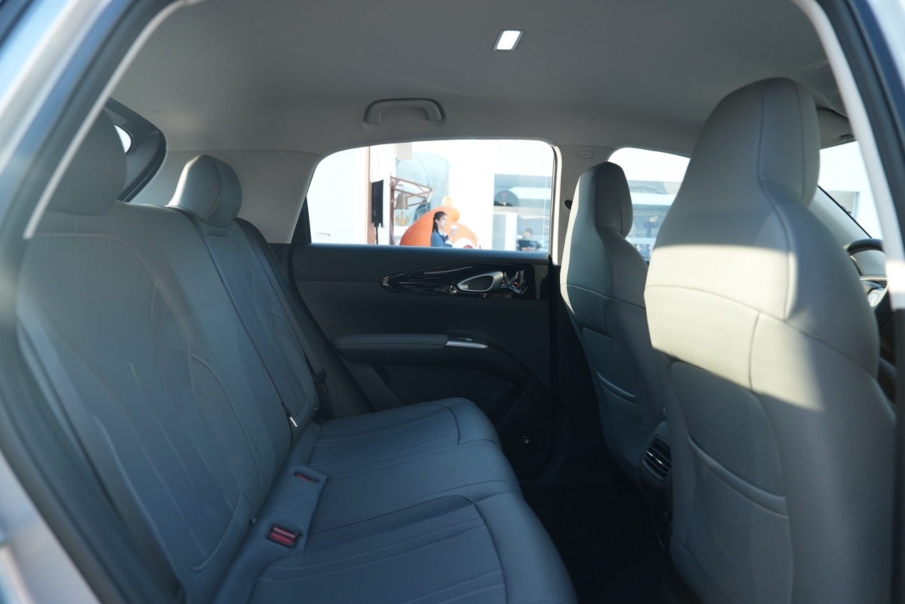 空间部分其实也是吉利星愿的很大的亮点,现在都在讲得房率的概念,吉利星愿的得房率是85%,那具体看,储物空间上车内中央岛台下方有镂空的储物槽,手套箱是很有意思的抽屉式手套箱,容量有10升,然后后排座椅底下还有隐藏式的储物格,容量有28升,再加上还算不错的后备箱和70升的前备箱,这台纯电小车在储物,载物空间这块是比较用心的,当然实际乘坐也ok,轴距超2.6米,本身也是空间设计取向,所以后排也比想象中要宽敞一些。