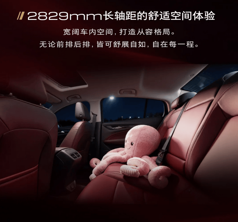 君威基于通用汽车中高级车全球车平台开发,车身尺寸达4913(4904)mm×1863mm×1462(1461)mm,轴距长达2829mm,兼顾日常通勤与驾趣需求。座舱采用环抱一体式设计,悬浮中控为内饰注入现代科技感;腿部以上区域大面积覆盖软质皮质,车门内饰板镶嵌蜂窝饰皮纹,并以法式双缝线点缀细节。此次与曜黑套件同步推出的专属竞速红运动内饰,让整车运动质感瞬间拉满,进一步强化君威的个性化标签。