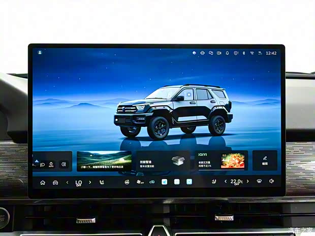 另外新车配备了一块2.5K的15.6英寸中控屏,在观影娱乐方面相比现款相对细长的屏幕使用感受会更好些。后排同样提供了一块15.6英寸的娱乐屏,为出行时坐在后排的家人或者朋友提供同样的娱乐配置。加上前排中间扶手的冷暖箱(带有独立的压缩机制冷),就让它凑齐了冰箱、彩电和大沙发的配置,这在以往那些主打硬派越野的车型中并不多见。可见此次新款车型在舒适性的提升上还是相当明显的。