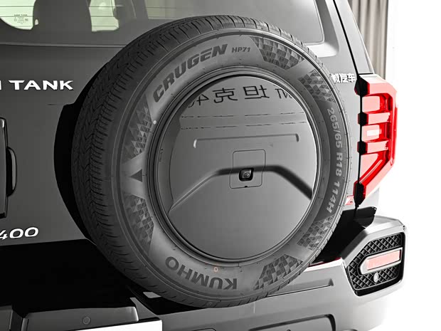 车尾部分,外挂式备胎搭配方正的车尾和外延的尾灯,视觉上足够硬朗。横开式尾门在这类车型上很常见,前面提前它智驾部分升级以后,它在尾部也增加了辅助驾驶小蓝灯,除了提醒周围车辆之外,也能够提供额外的情绪价值。车尾备胎小书包也进行了简化,轮胎更多的裸露在外面,好处就是结构简单拆卸便利。