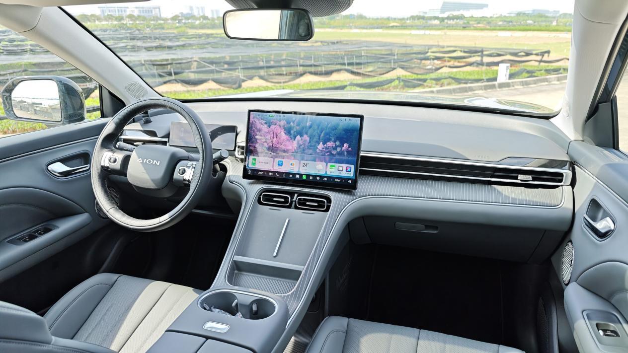 内饰设计方面,埃安i60依然采用简洁的T字型布局,车内标配14.6英寸中控屏幕、全景影像和透明底盘、车载行车记录仪、L2级辅助驾驶、头部气帘、哨兵模式、电动尾门等配置,进阶版车型还提供前排座椅通风加热按摩、50W手机无线充电等功能。
