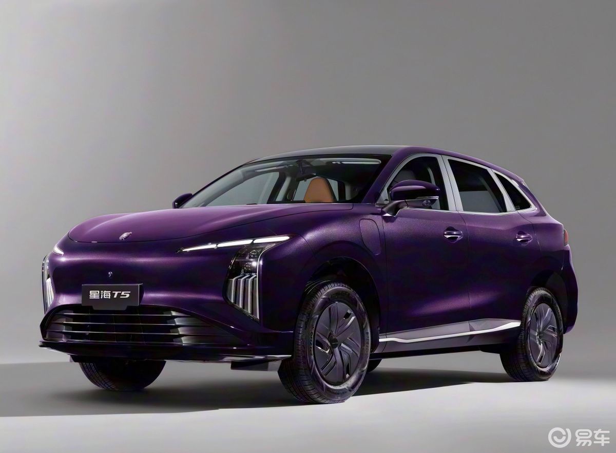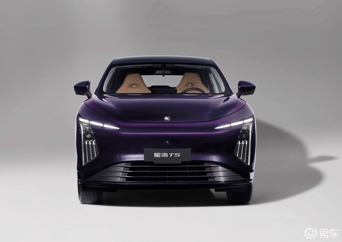 星海T5在外观设计上独具匠心,采用与星海S7同源的流体美学设计,将自然之美与现代科技感相融合,线条流畅舒展,身型圆润动感。封闭式前脸搭载7字型前灯组,独特且犀利,下方的前保险杠集成了大嘴进气格栅,增添了几分气势与运动感。此外,新车提供了皓月灰、碧玉青、龙胆紫等6种车色,满足不同消费者对于个性化的追求。