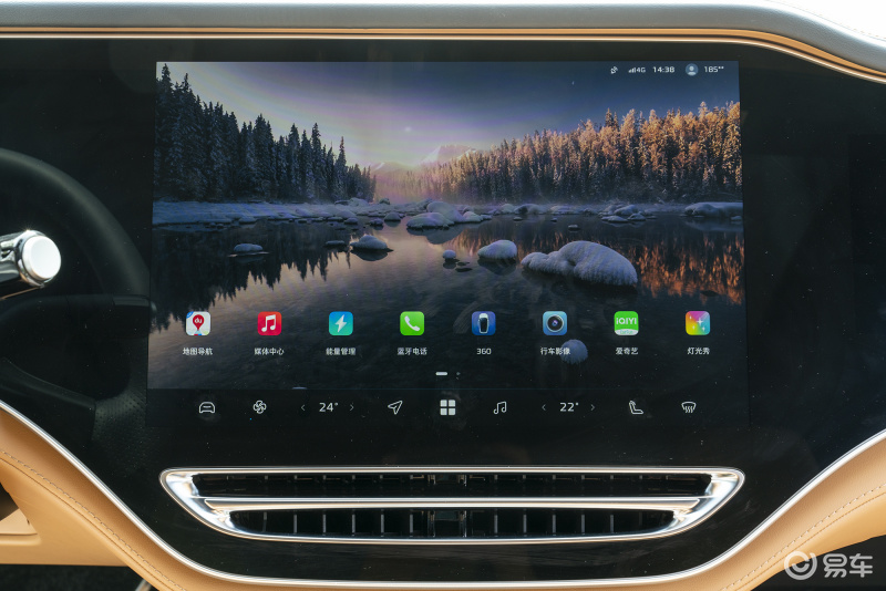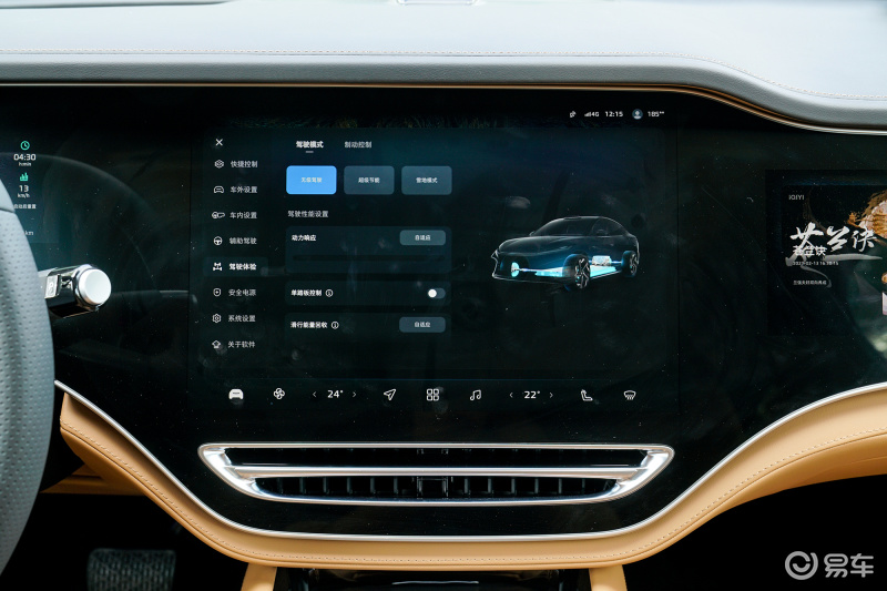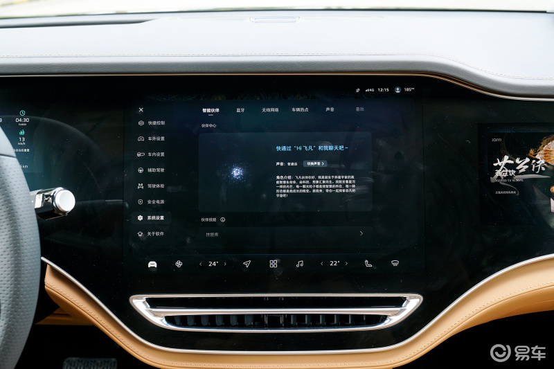 15.05英寸AMOLED中控屏显示细节十分细腻,色彩也很丰富,并且有多种背景可以进行替换。系统采用了卡片式+Dock快捷烂的主流形式,车辆的导航、影音娱乐、驾驶辅助等功能均可以在屏幕中进行设置。车内的每个位置都可以通过“Hi,飞凡”轻松唤醒RISING OS语音助手,而语音助手也会根据声音来源,与相应位置的乘客进行互动。副驾屏则依然以娱乐为主,并且可以辅助驾驶者进行导航的设置。