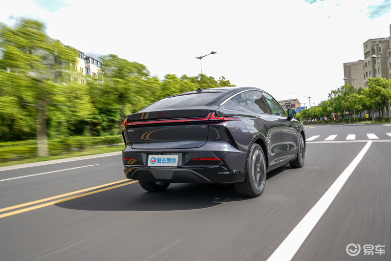 R7车尾部的造型简洁但不简单,很有设计感,溜背的造型是尾部美感的来源,而立体式的贯穿式尾灯则起到了一个锦上添花的作用。车尾顶部有一道很宽的高位刹车灯,底部则有扩散器的造型。