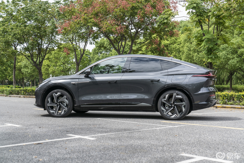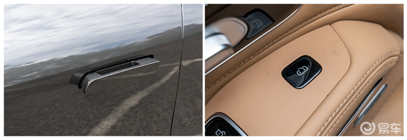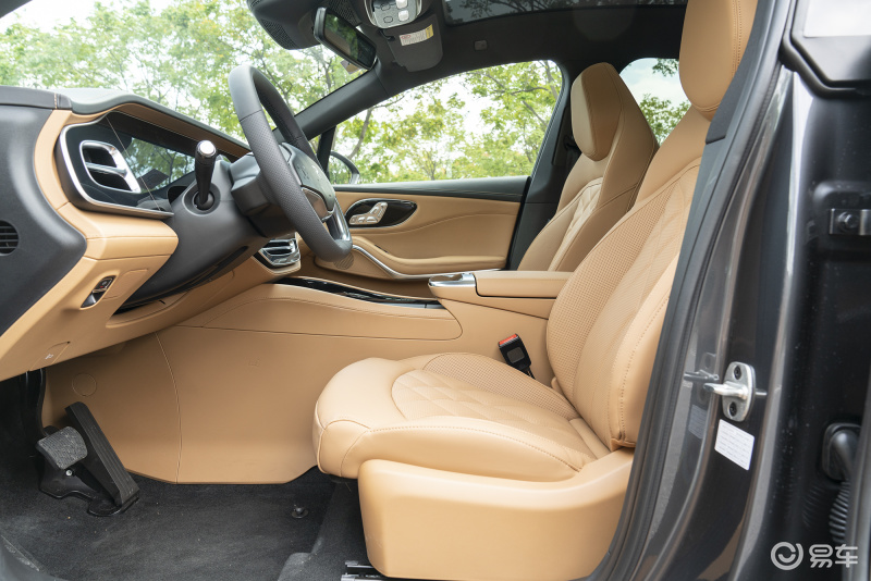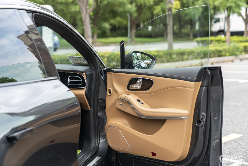 车辆的长宽高尺寸为4900x1925x1655mm,轴距尺寸为2950mm,电动车短前后悬的特性也让车身的比例看上去十分协调,溜背的线条也很流畅。R7采用了隐藏式的门把手,后排还拥有隐私玻璃的配置。整车4门为无框车门的设计,而试驾车型的前排还配备了电动车门,轻触内侧开关及外把手即可自动开闭车门,很有仪式感。