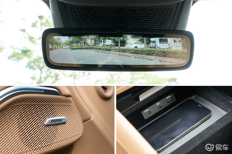 车内的大部分区域均用软质及皮质进行包裹,同时,座椅的填充也很饱满舒适。前排座椅拥有加热、通风、按摩的配置,副驾还提供了脚蹬及腿托的设计,舒适度又上升一个等级。除此之外,像前排手机无线充电、BOSE音响、流媒体后视镜等配置也是一应俱全。