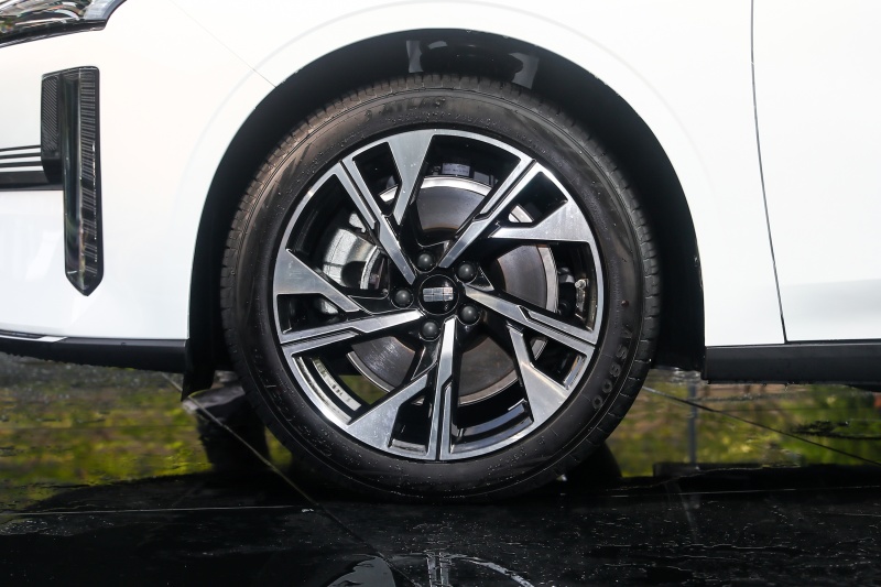车身侧面,新车整体比较时尚动感,多条棱线组成的车身腰线整体呈上扬姿态。同时,新车采用了时下流行的隐藏式门把手以及低风阻轮毂设计。车顶部分新车采用了悬浮式设计,车窗边框处采用了与车身同色的设计。