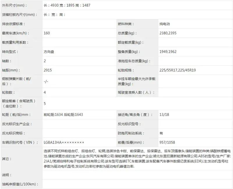 动力方面,目前官方还没有公布具体信息,根据之前的申报信息来看新车搭载东风汽车公司生产的磷酸铁锂电池,电机峰值功率200kW。