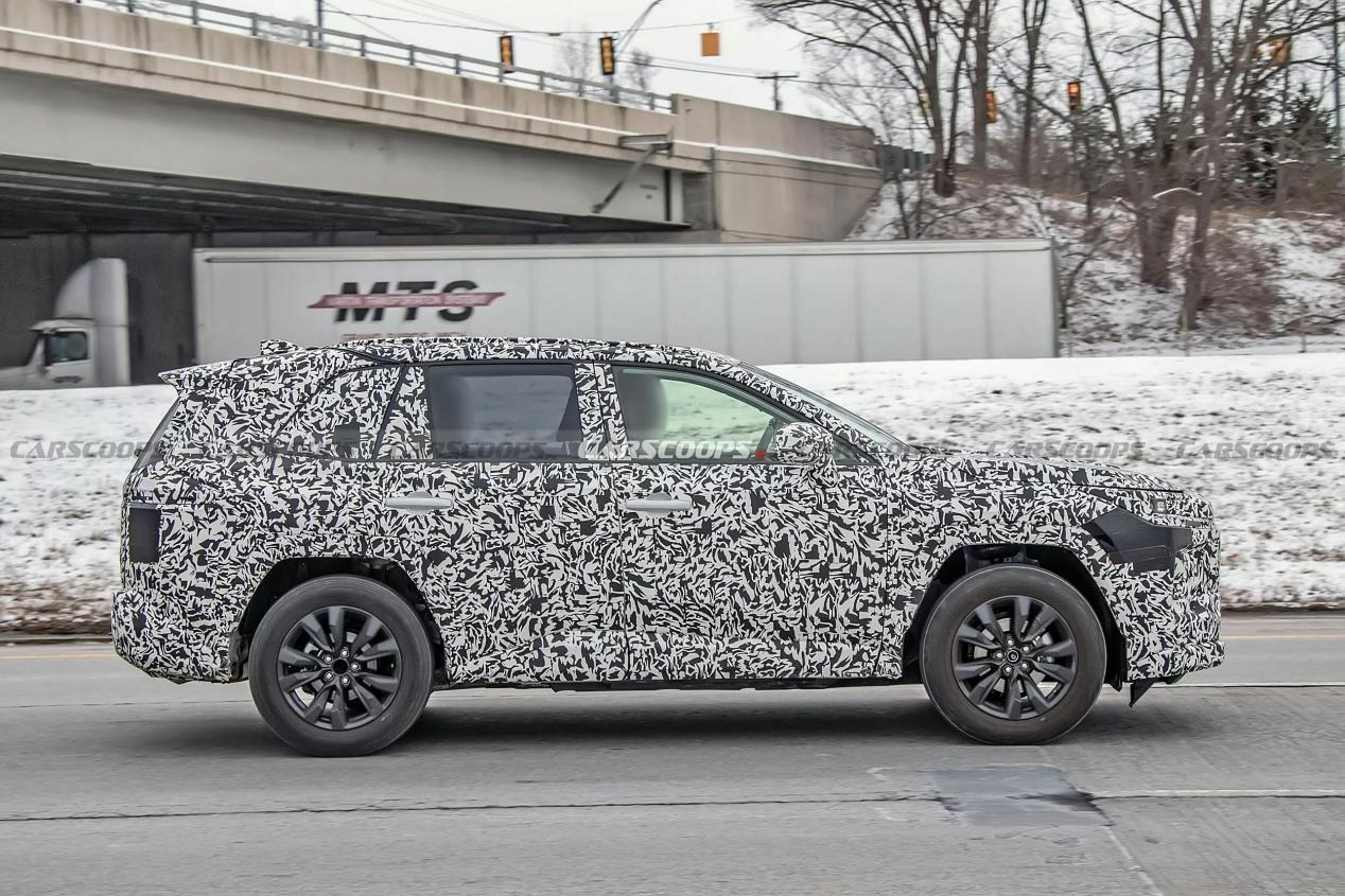 车侧的轮廓,元素都与现款基本一致,有城市SUV的圆润造型,传统后视镜、门把手等设计,整体强调实用百搭。只不过位于C柱和D柱之间的侧窗长度,较之现款车型有所增加,也就说新车整体车身长度及后备厢进深都会有一定加长。
