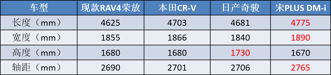 在现款RAV4荣放刚换代那会,它的4625mm车长,2690mm轴距在同级中确实能算中上水准,但随着本田CR-V、比亚迪宋PLUS等车的更新,它的尺寸已经不太够看,所以新车此次加长是势在必行之举,只是不确定它是加到看齐合资竞品的中等水平还是趋近自主的中上水平。