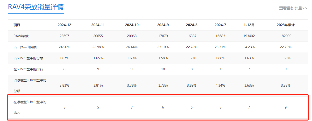 但想要进步更多,还是要研究如何加大新能源版本车型的销量,毕竟现在的市场可是大半在新能源车手中(2024年6月后新能源渗透率均超50%),燃油卖得再好,也是在剩余市场打转。曾经的丰田RAV4确实是城市SUV代表,现在来到新一代,还能继续做代表吗?值得期待。