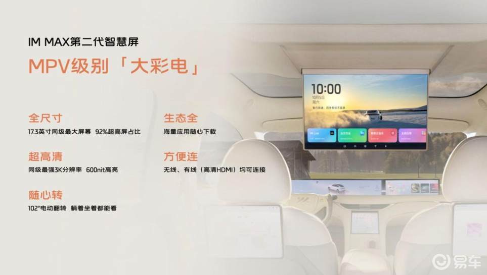 在全新智己LS6剧院版的众多升级亮点中,“MPV级大彩电”IM MAX第二代智慧屏的全系上车无疑是最引人注目的。这款智慧屏不仅拥有同级最大的17.3英寸3K高清屏幕,还与LS6独有的“零重力、贵妃椅、大床房”三躺模式完美搭配,为乘客带来了前所未有的娱乐体验。