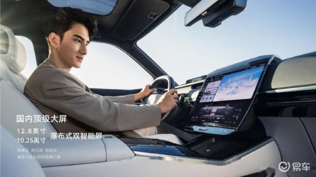 车里的设计也很用心,比如12.8英寸+10.25英寸瀑布式中控屏,分辨率高,体验也很流畅,还支持各种车机互联方案,包括无线AppleCarPlay、华为HiCar、百度CarLife,不管什么机型,都无需数据线,可以直接互联。