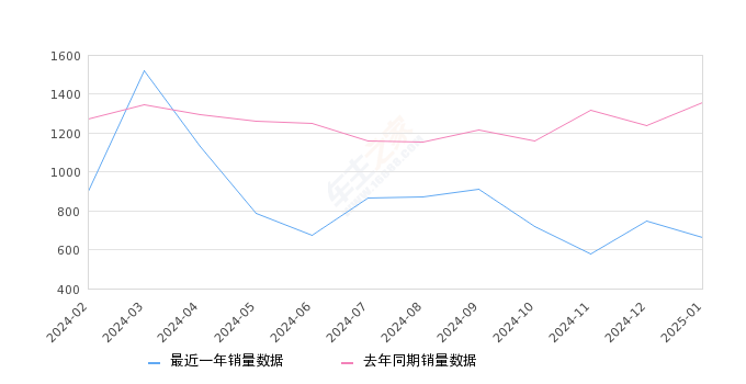 2025年1月,揽胜极光销量同比下降51.22%,环比下降11.62%;最近12个月中,揽胜极光销量在2024年3月达到最高,销量为1521辆。