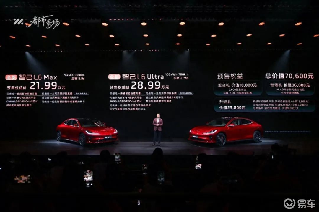 全新智己L6推出三大配置版本,预售权益价格区间为21.99万元~28.99万元。