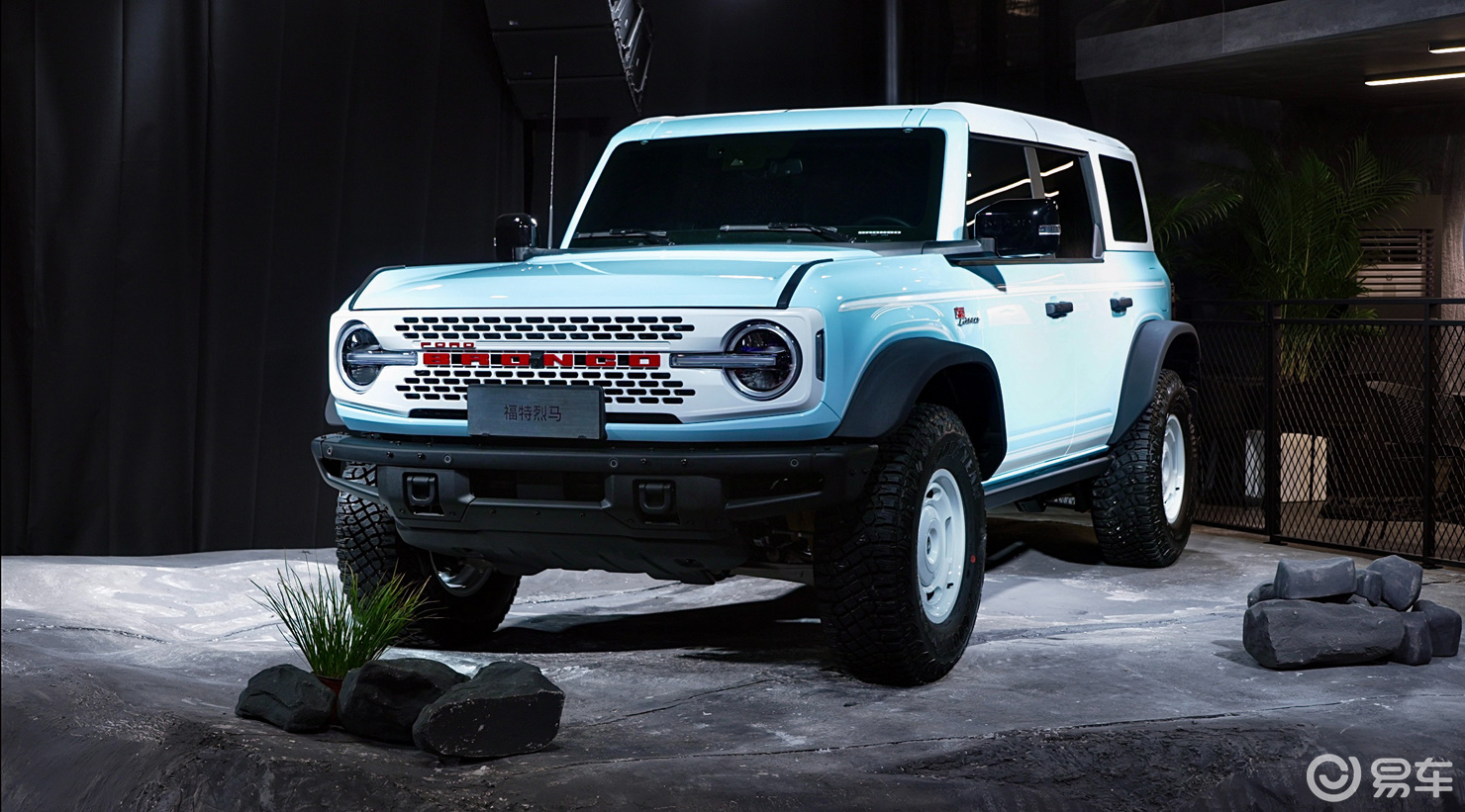 福特烈马复古特别版新车主要在外观方面做了调整,整车造型拥有非常复古的设计语言。其外观致敬了1966年福特烈马,经典设计与现代科技融合。外观设计上采用了引人注目的经典双色涂装,模块化硬顶采用独特的复古感白色喷漆,营造出强烈的复古视觉效果。与白色车顶搭配的是独具一格的知更鸟蛋蓝色(Robin's Egg Blue)车身涂装。