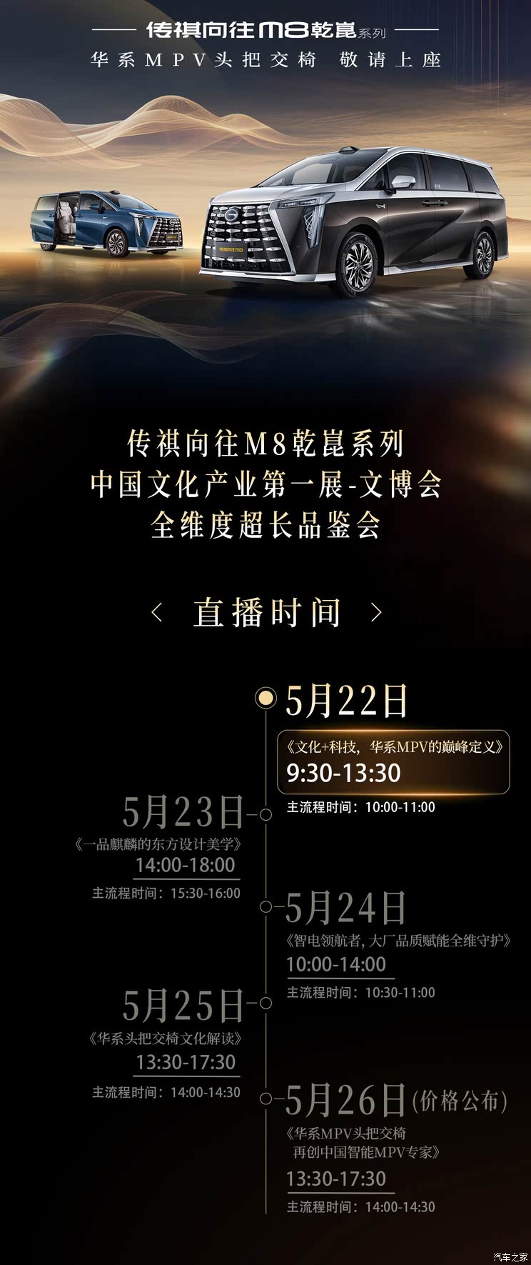 [车讯 资讯] 近日,我们从广汽传祺官方获悉,旗下传祺向往M8(参数|询价)乾��系列将于5月26日正式上市。新车是传祺华为联合创「新」计划的首款车,将配备鸿蒙座舱以及乾��驾驶辅助系统等配置,新车定位中大型MPV,将采用2.0T插混动力系统,纯电续航里程可达248公里。
