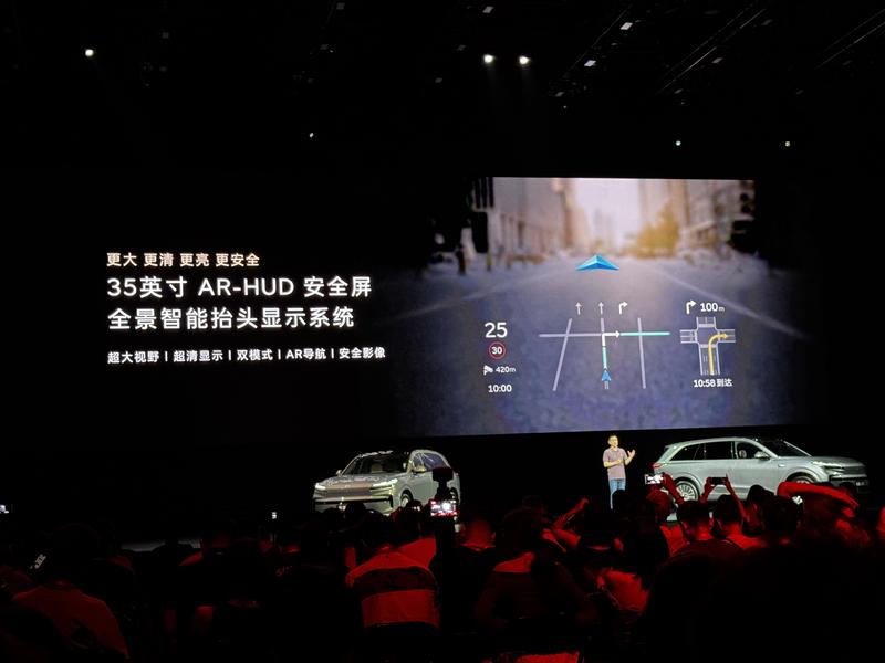 乐道L90还配备了17.3英寸3K吸顶娱乐屏,屏占比高达91.5%,以及8英寸后排场景屏,并配备35英寸AR-HUD安全屏全景智能抬头显示系统。