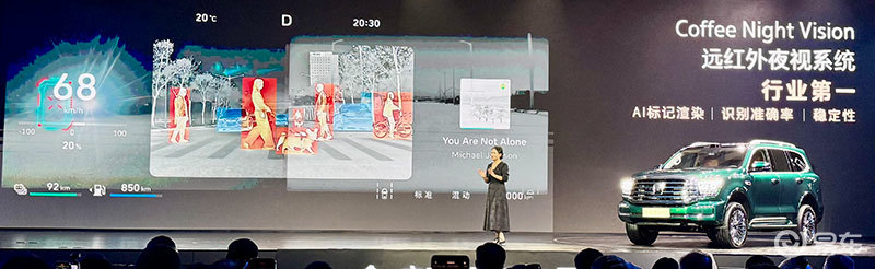 进入车内,新款坦克500的变化可谓脱胎换骨,尤其在豪华感和智能化的平衡上,展现出远超老款的成熟度。12.3英寸全液晶仪表+14.6英寸中控屏+HUD抬头显示的组合得以保留,内置的Coffee OS3车机系统在流畅度和功能丰富度上有了明显提升,而仪表盘支持的远红外夜视系统,这个能识别200米外生物的配置进一步强化了夜间驾驶的安全性——这点对于经常在非铺装路面行驶的越野用户来说,实用价值不言而喻。