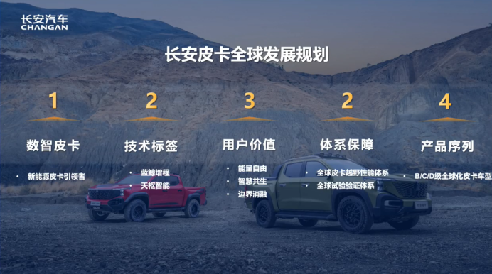 他提到,长安为用户提供三大核心价值:能量自由、智慧共生、共创共赢。为此,长安与中汽中心等行业机构合作,建立皮卡越野等级体系与全球试验验证标准,确保产品在海外不同市场(如墨西哥、沙特、泰国等)均能满足安全、可靠、高效的要求。未来,长安将推出四个产品序列,覆盖皮卡与越野车型,服务户外工作与生活用户。