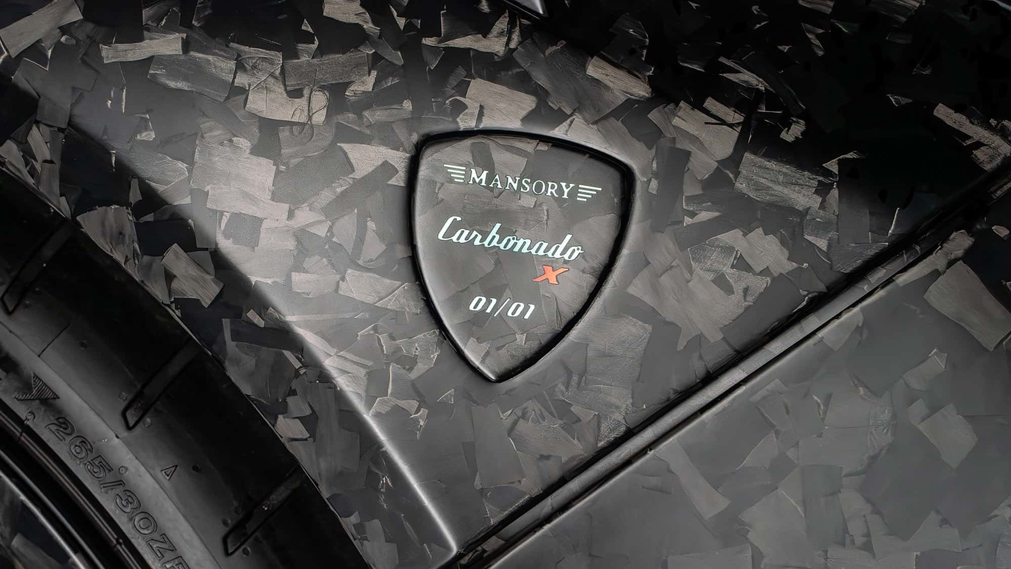 Carbonado X配备了Mansory为其量身定制的Forged Carbon轮圈,轮圈表面部分采用了与车身相同的“Forged Carbon”外观。轮胎方面,Mansory为其配备了来自普利司通的高性能轮胎,前轮尺寸为265/30 R21,后轮则为355/25 R22。