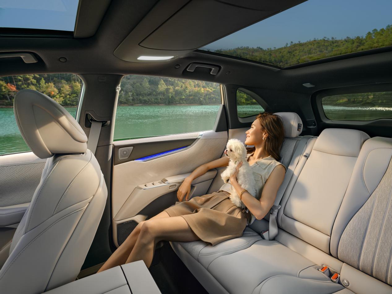 更重要的是,至境E7的座舱配置更是“能给的都给了”。它的五恒健康座舱获得中汽中心“零甲醛”汽车认证,内饰材质采用OEKO-TEX母婴级健康认证标准,从根源杜绝甲醛和重金属;后排配备15.6英寸影院屏和20扬声器7.1.4声道音响,副驾零重力躺椅支持座椅通风加热按摩,冷暖箱、二排桌板、四座悬浮层座椅等配置也一应俱全。对家庭用户,尤其是带孩子出行的场景来说,这些配置的实用性和诚意都相当到位。